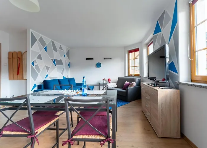 Om van uw vakantie in Karpacz te genieten, verblijf in Apartament Lazurowy Widok Centrum Karpacz - Z Prywatnym Parkingiem - Spaceapart, gelegen op afstand van 2 km van Zentrum von Krummhübel en op 25 minuten lopen van Kolorowa Lift.